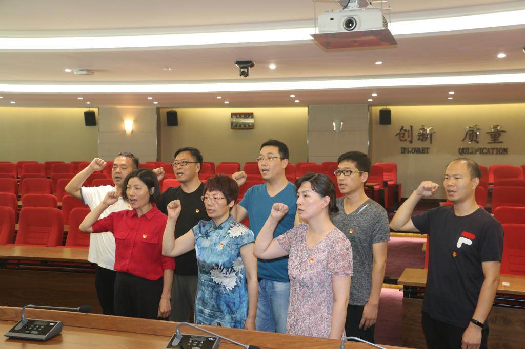 上午10点半,科技开发处(资产经营管理办公室)党支部联合纪检监察室党支部,在行政楼238会议室举行了入党宣誓活动,佩戴着党徽的两个支部8名党员在纪检监察室党支部杨华同志的领誓下,向党旗庄严宣誓,重温了入党誓词。