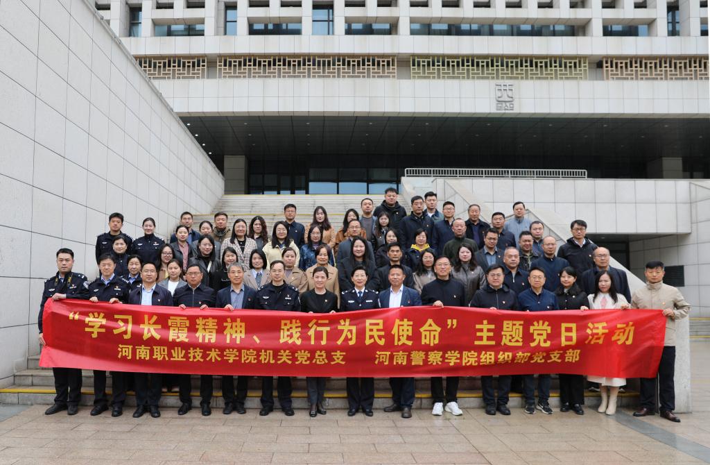 为深入学习贯彻习近平总书记关于树立和践行正确政绩观的重要论述,推动学习教育走深走实,引导广大党员干部深刻感悟长霞精神的时代内涵,树牢为民造福、实干担当的正确政绩观,4月8日,河南职院机关党总支与河南警察学院组织部党支部联合开展“学习长霞精神、践行为民使命”主题党日活动。河南职院机关党总支54名党员代表参加活动。